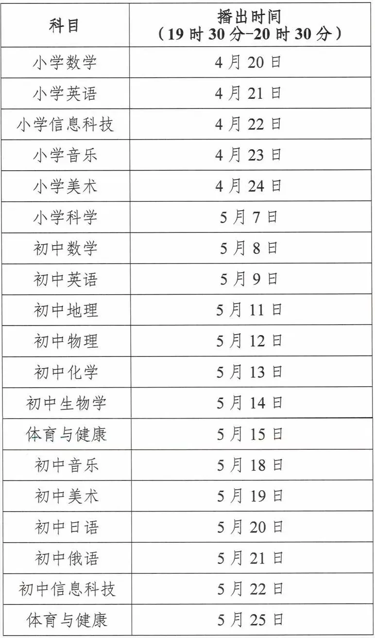 各学科具体时间安排如下: