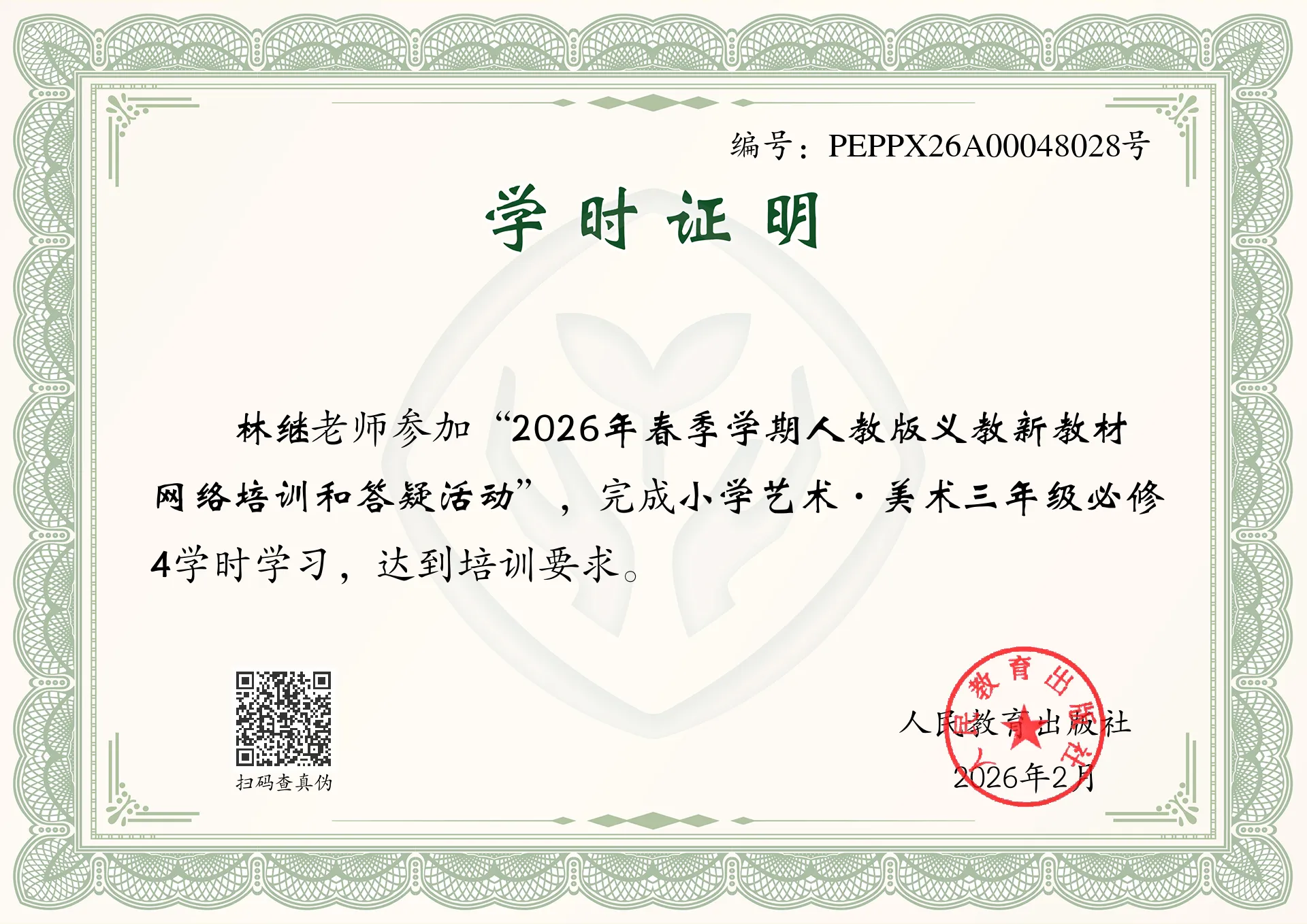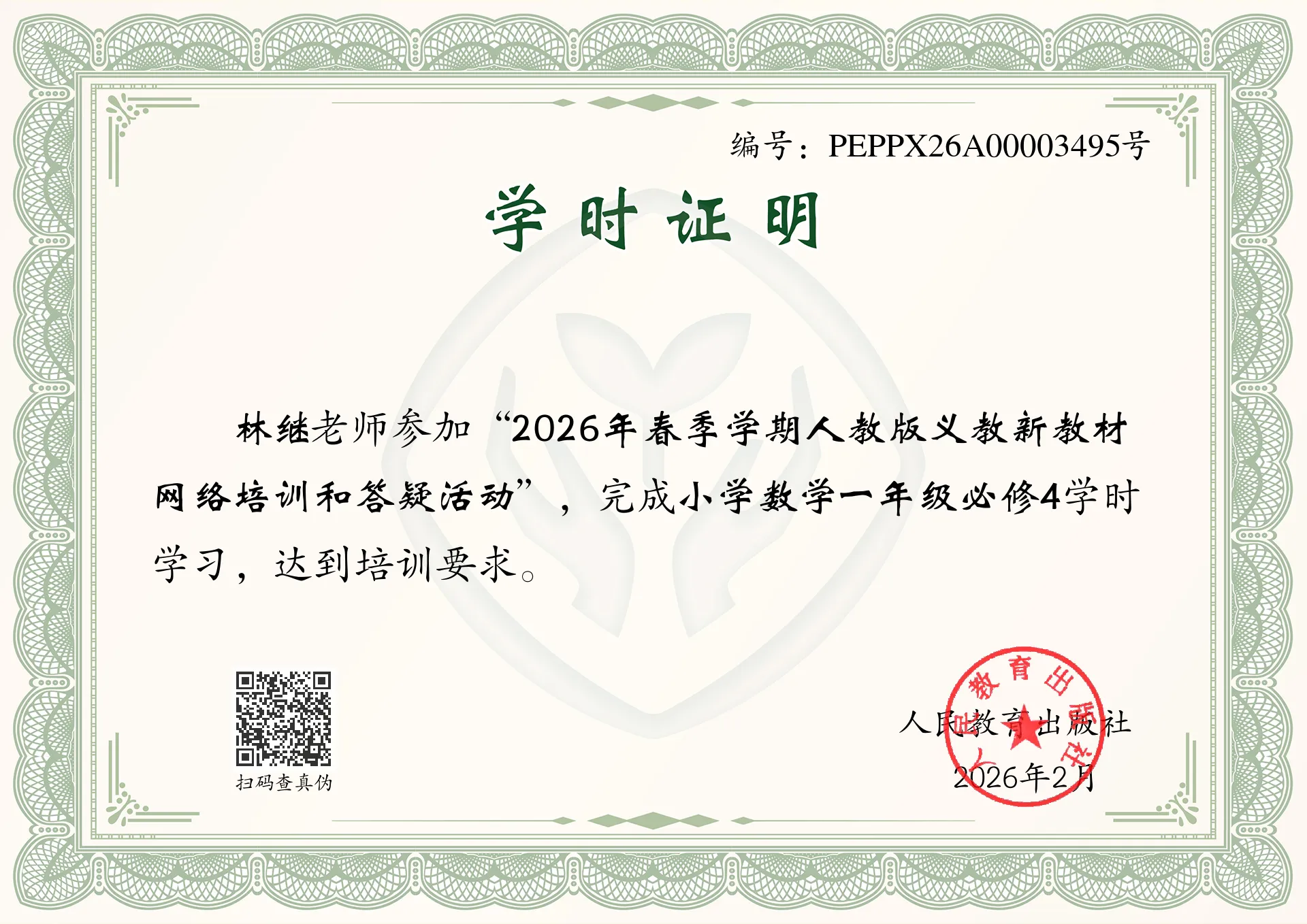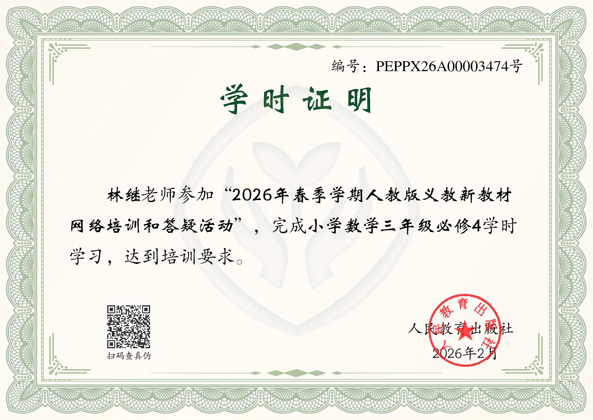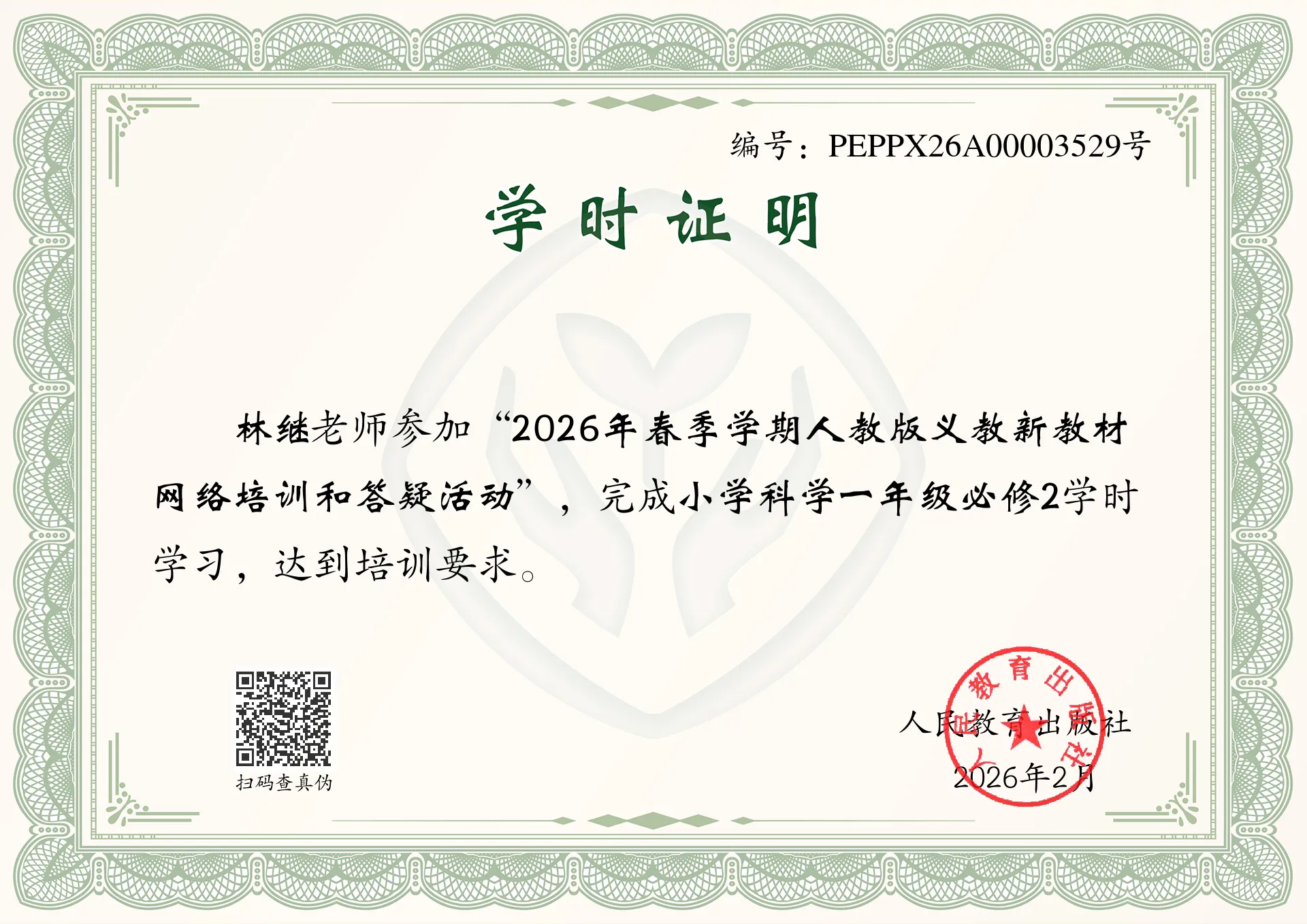 2026年“新教材讲堂”“人教云教研”第一阶段网络教研活动结束后,人教社将分别为按规定完成注册、报名和教研活动的教师发放电子版学时证书。届时,完成相关学习的教师可登录本人注册账号查看、打印学时证书。学时统计截至当年12月31日。